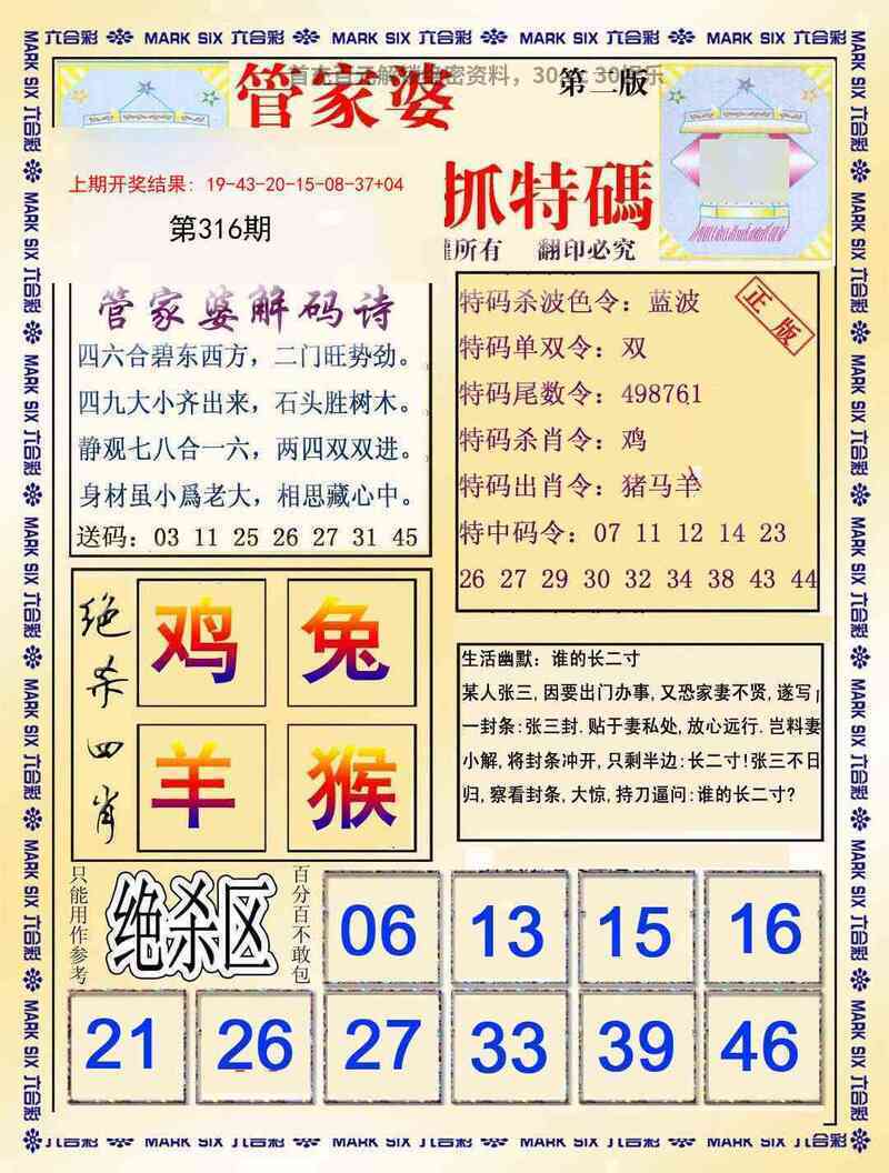| 316期:家野两肖【野兽+马牛】开:马24准 |