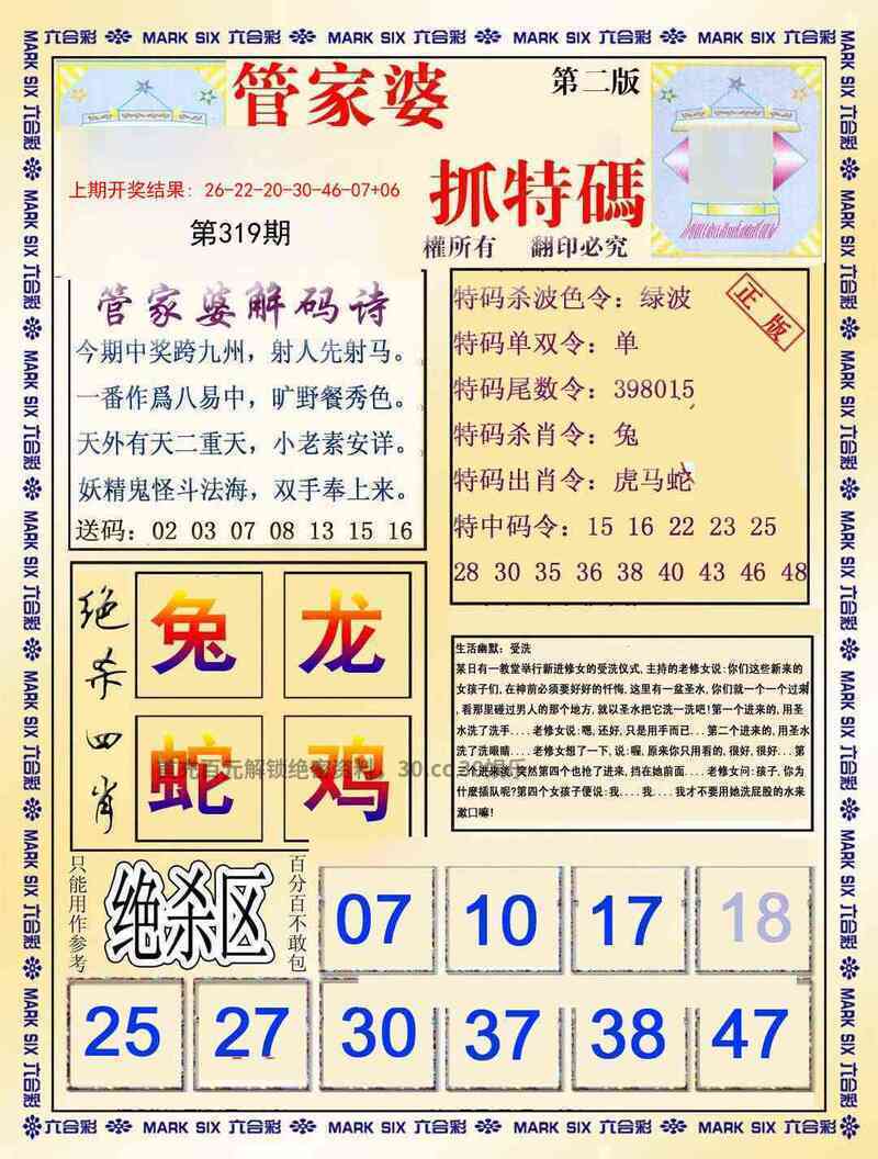 | 306期:家野两肖【家禽+龙蛇】开:牛17准 |